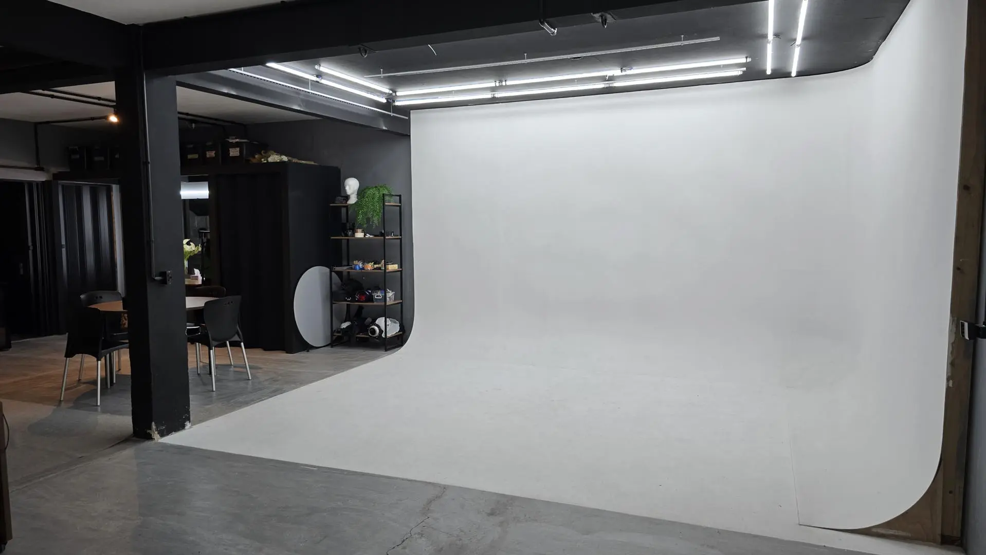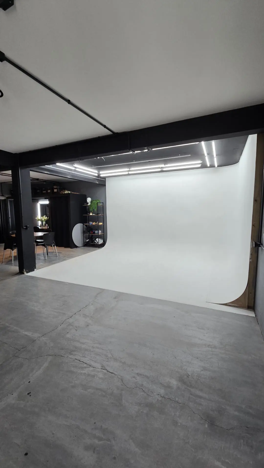 Ciclorama em L com 20m² de área útil. Transição perfeita para fotos de moda e campanhas.